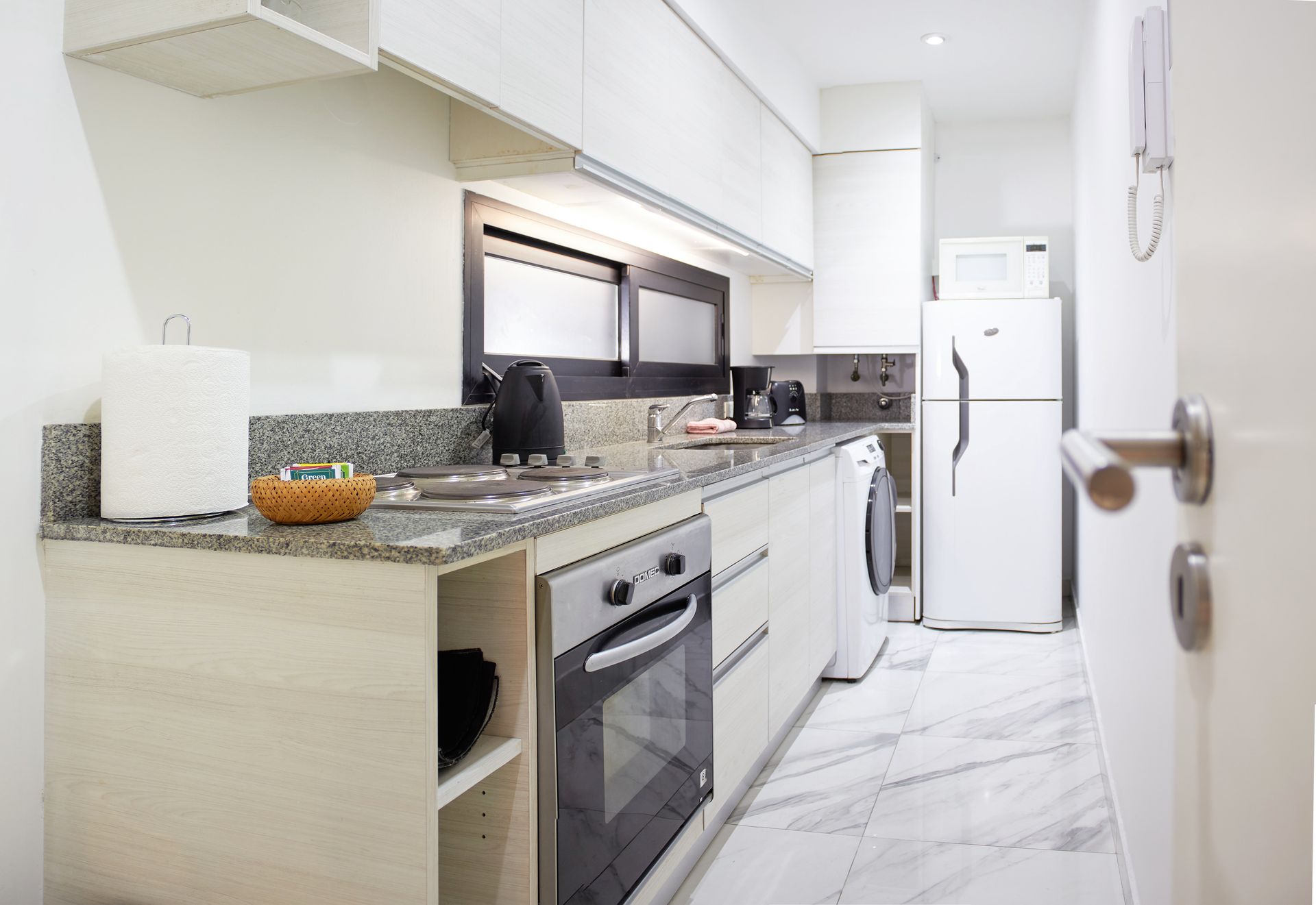 En una ubicación privilegiada, Monroe Suites es un edificio moderno que cuenta con seguridad por circuito cerrado de cámaras, ingreso automatizado con tarjetas magnéticas y accesos amplios, aptos para personas con movilidad limitada.